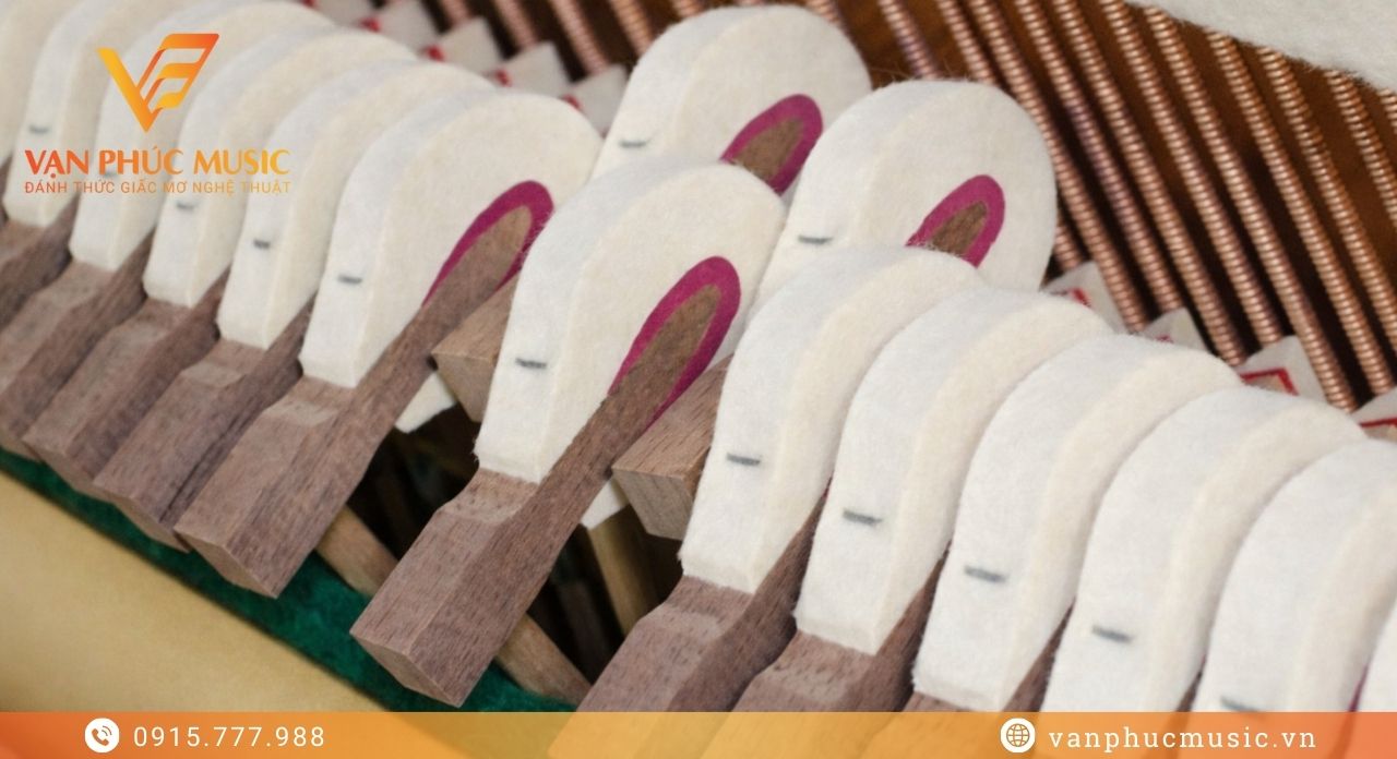 Bao quanh lõi gỗ là lớp nỉ lông cừu ép kép (Double Felt) xử lý theo tiêu chuẩn Yamaha. Cấu trúc hai lớp tối ưu khả năng chịu lực, đồng thời kiểm soát âm sắc đồng đều trên toàn dải phím, treble sáng gọn và bass sâu chắc. Độ đàn hồi bền bỉ giúp chất lượng âm thanh ổn định lâu dài, phù hợp cho luyện tập nghiêm túc lẫn biểu diễn.