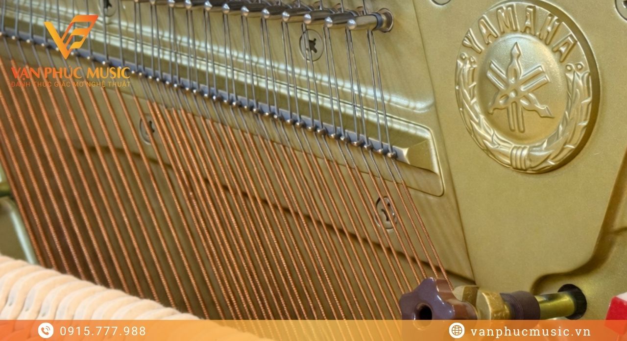 Đàn piano cơ Yamaha WX3AWn được trang bị bộ dây thép cường độ cao, trong đó các dây bass quấn đồng nguyên chất thủ công nhằm đảm bảo độ tinh khiết và ổn định của âm thanh. Điểm then chốt nằm ở hệ thống Agraffes (khu vực Bass & Tenor), công nghệ thường xuất hiện trên Grand Piano, giúp cố định chính xác vị trí và độ cao của dây, tạo nền tảng rung ổn định cho piano cơ cao cấp.